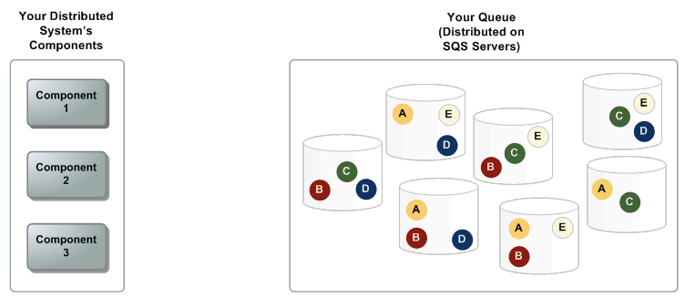 - A~E 의 메세지가 queue에 중복적으로 분산저장 된다.