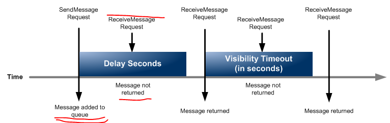 - 메시지 수신 대기시간(receive message wait-time) : 수신요청 응답 뒤, 유효한 MSG가 있을때까지~ 쉴수있는 최대시간?