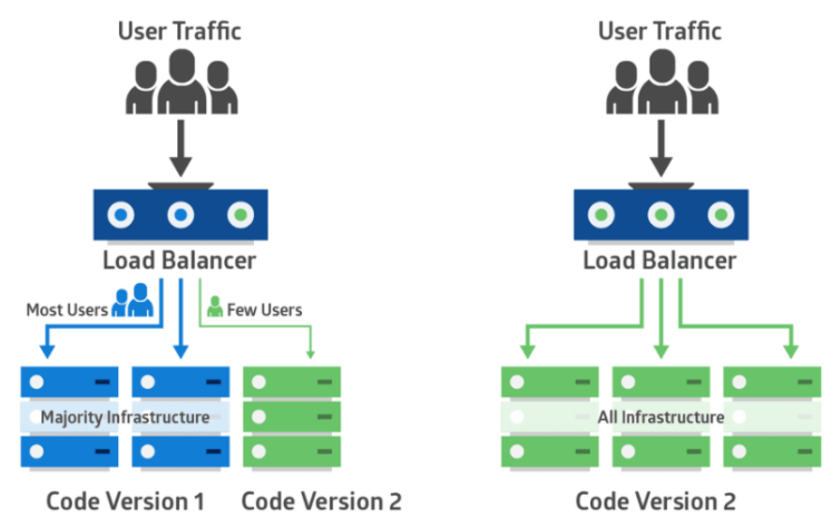 - 즉, 특정 or 램덤 User 의 트래픽만 신버전으로 분산 및 확인 후~ 전체적용.