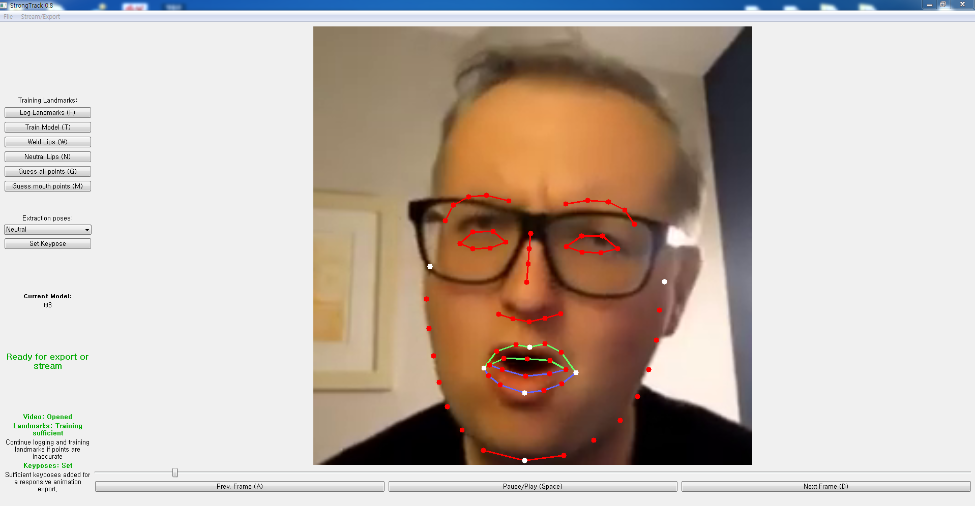 - strongtrack.exe 에 동영상을 불러와서, 몇장의 프레임을 노가다(?) 학습시키면... 데이터를 뽑을수 있다.