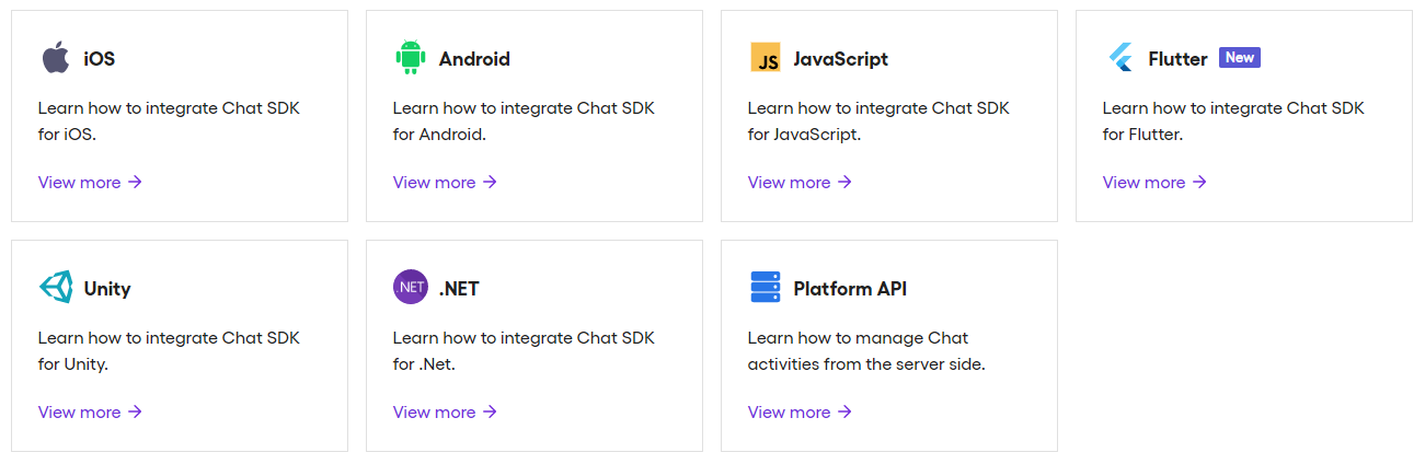 - 원하는 각 Application 을 만들어서~ App ID 를 발급받고, User 및 보안 및 서비스(Chat, Call, ...) 등등을 셋팅한다.