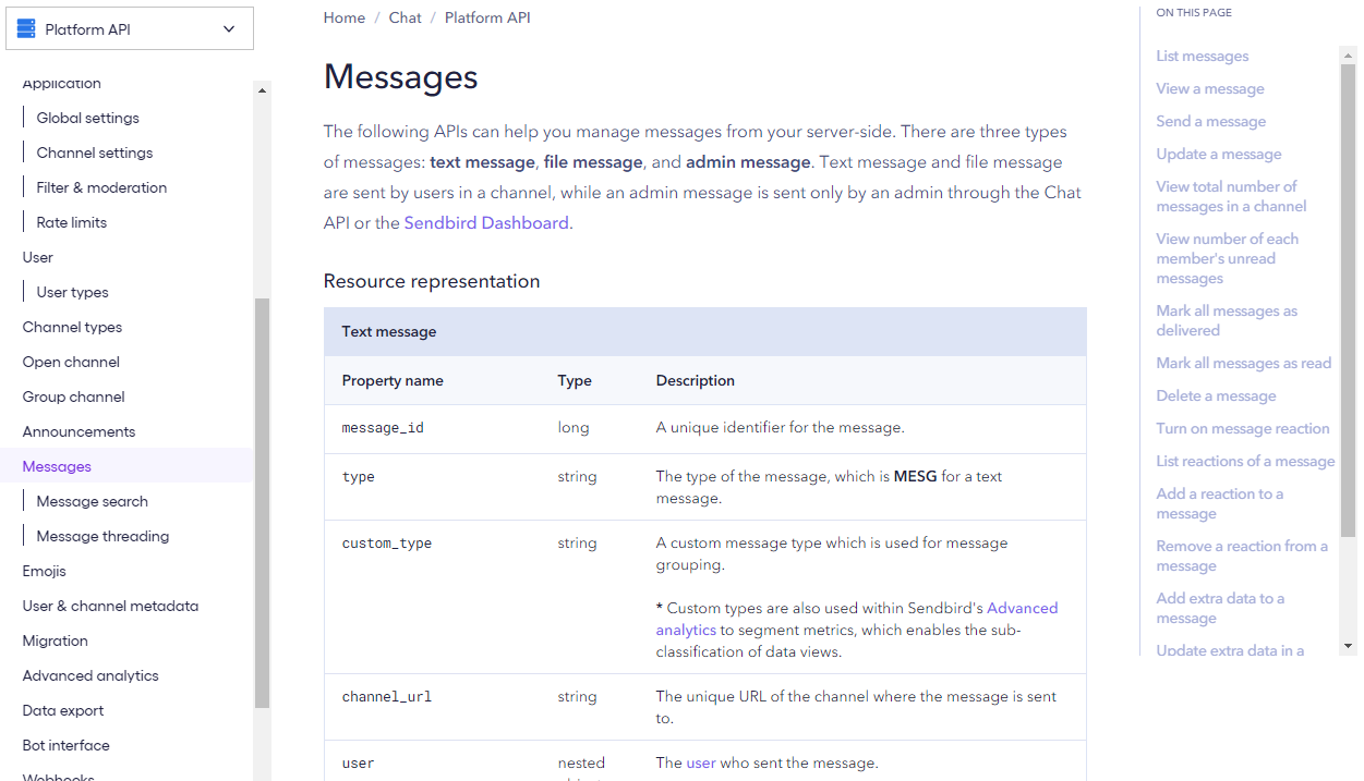 app_id = '앱' api_token = {'Api-Token': '토큰'} user_id = urllib.parse.quote('유저', safe='') channel_url = 'sendbird_open_channel_채널' requests.get(f"https://api-{app_id}.sendbird.com/v3/users/{user_id}", headers=api_token) requests.get(f"https://api-{app_id}.sendbird.com/v3/open_channels", headers=api_token) requests.get(f"https://api-{app_id}.sendbird.com/v3/open_channels/{channel_url}", headers=api_token) requests.get(f"https://api-{app_id}.sendbird.com/v3/open_channels/{channel_url}/participants", headers=api_token) headers = {'Api-Token': '토큰', 'Content-Type': 'application/json; charset=utf-8'} data = {'message_type': 'MESG', 'user_id': '유저', 'message': '메세지'} requests.post(f"https://api-{app_id}.sendbird.com/v3/open_channels/{channel_url}/messages", headers=headers, data=json.dumps(data)) message_at = ... message_id = ... response = requests.get(f"https://api-{app_id}.sendbird.com/v3/open_channels/{channel_url}/messages?쿼리=...", headers=api_token) messages = response.json() message_list = messages['messages'] for message in message_list: if message['type'] == 'MESG': print(...)