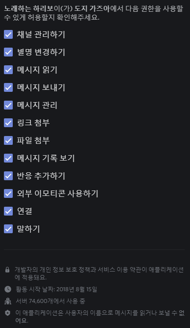 - 이런식으로 초대한 Bot 에게 서버의 특정 권한을 부여해주고, 초대후 각종 인터액션으로~ 여러가지 요청을 하는식...