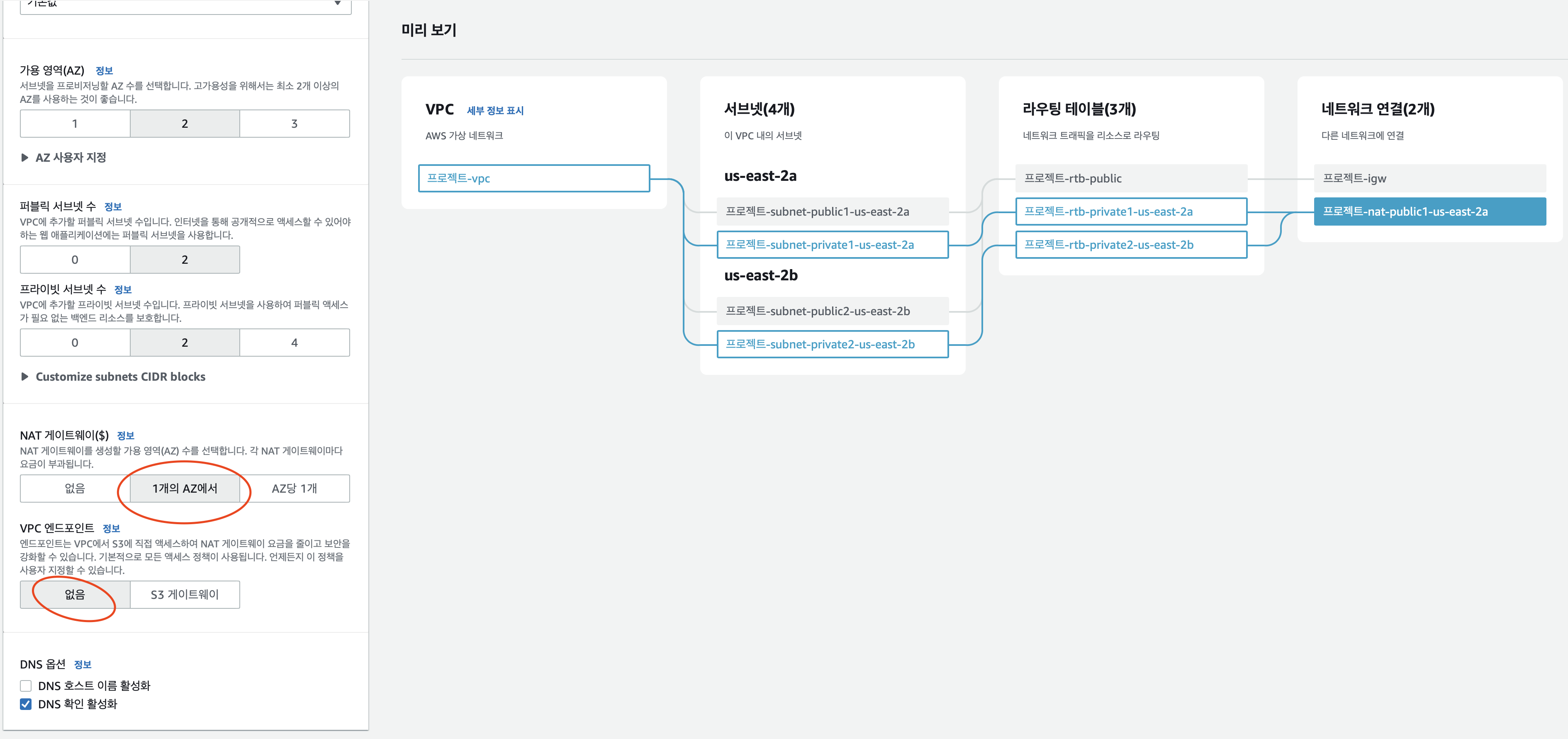 - vpc 마법사 -> 최대한 단순하게 하나로 -> vpc 설정 → vpc 선택 및 private Sub 1개 및 보안그룹 선택 → 테스트 -> 됨!!!