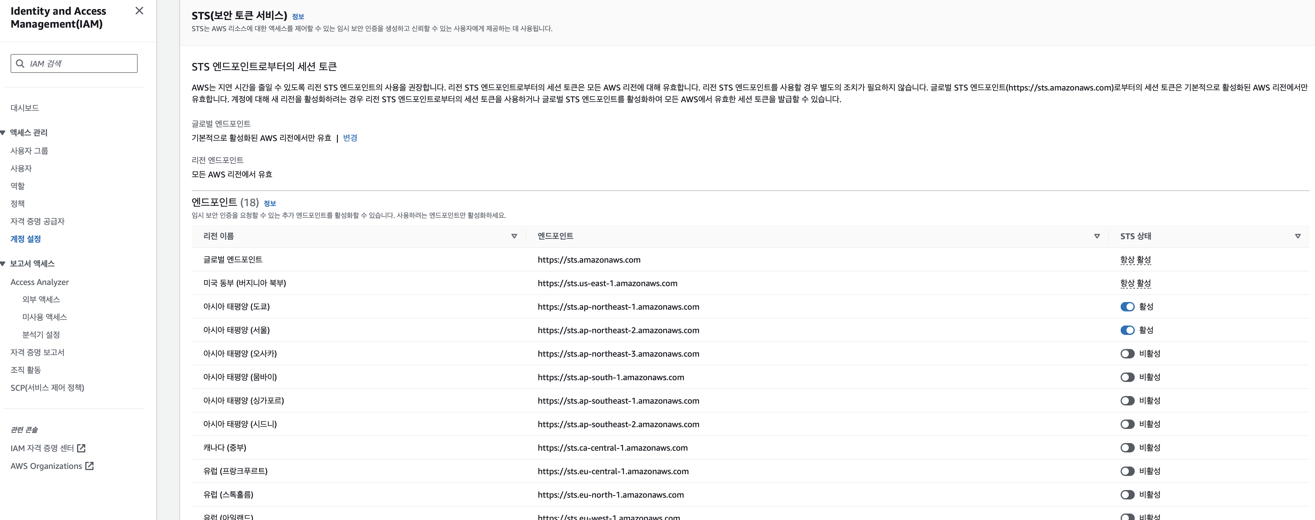 - -> https://docs.aws.amazon.com/IAM/latest/UserGuide/id_credentials_temp_enable-regions.html