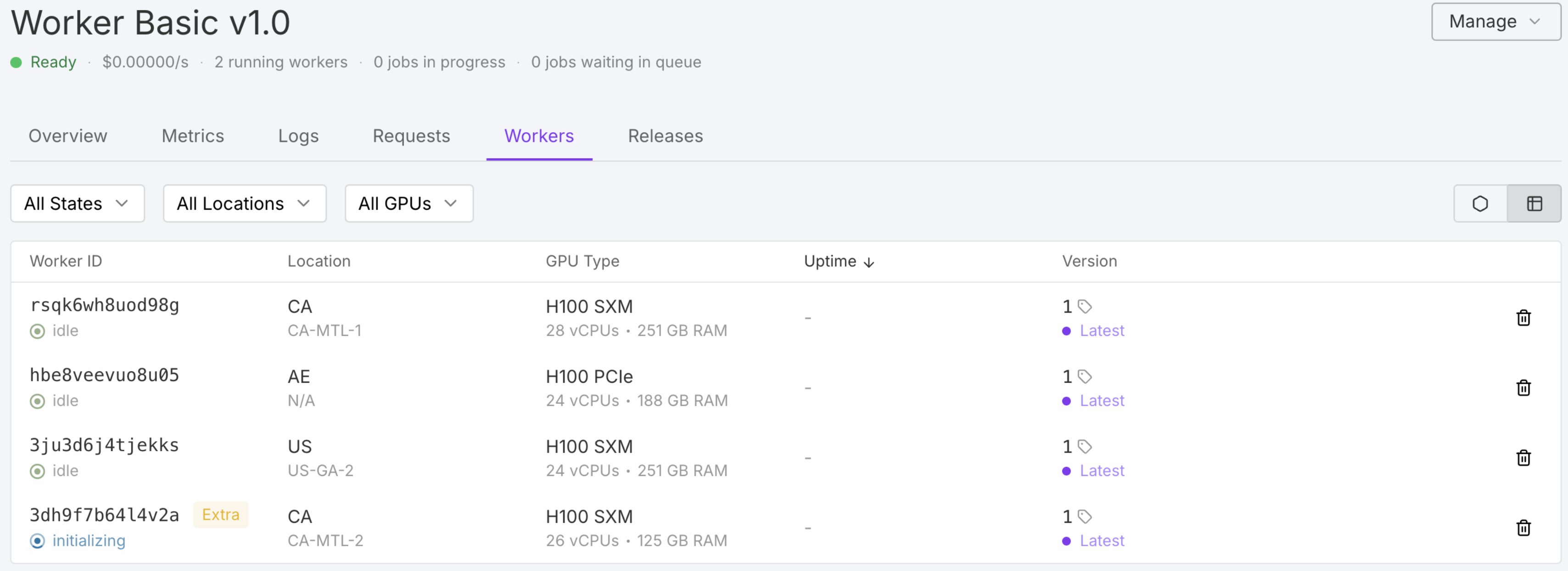 - "GPU selection", "Active workers", "GPUs per worker", "FlashBoot", ...