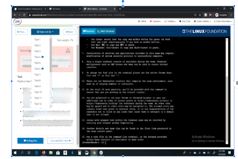 - 환경 : https://www.examslocal.com/ScheduleExam/Home/CompatibilityCheck -> Option3 -> Linux Foundation 및 CHFA 선택!